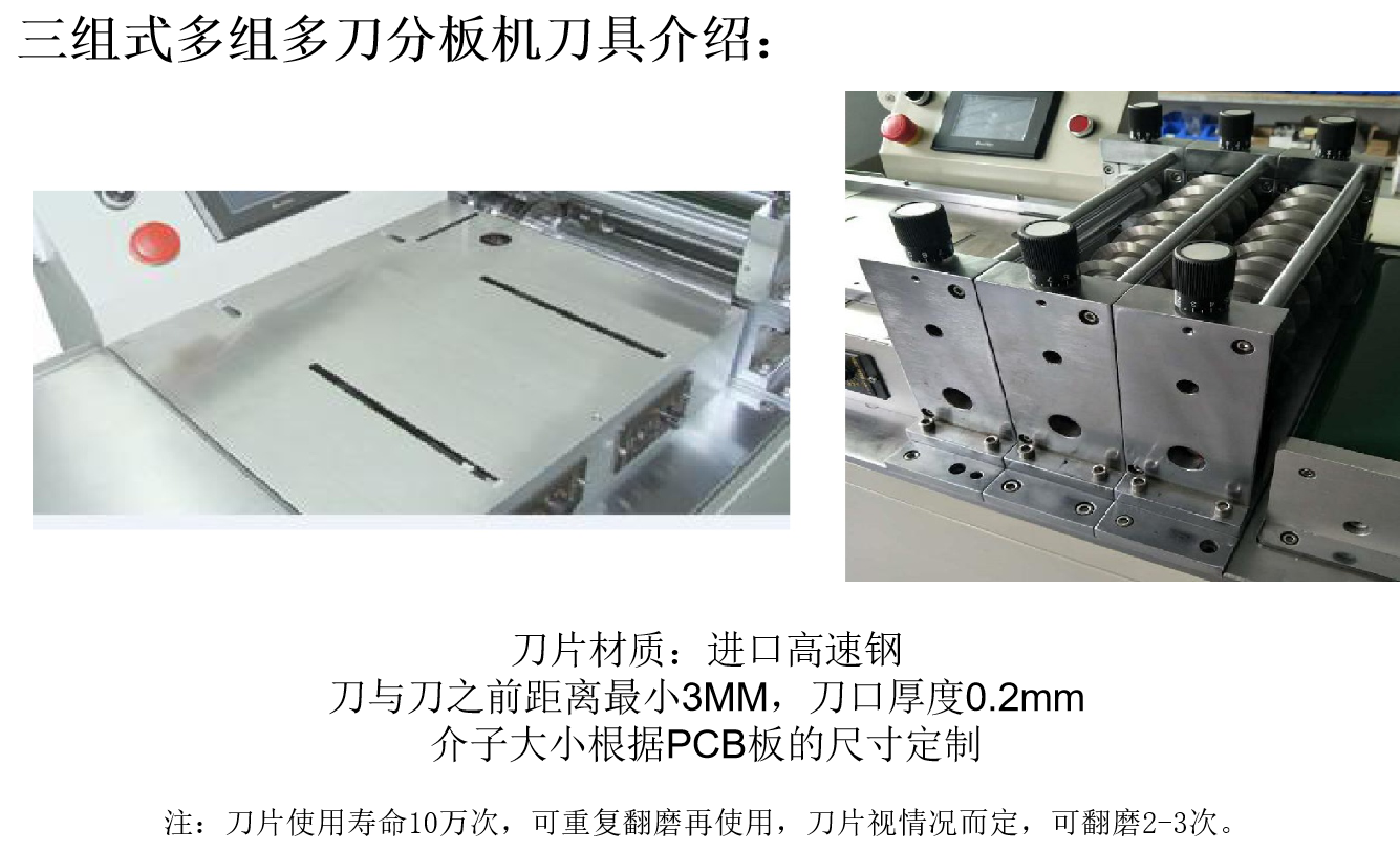 ATB-430三組式多組多刀分板機可一次性整拼板分割,可對接上下板機,實現(xiàn)無人化操作。不但安裝便利,操作設定更是簡單,可以節(jié)省多名員工,省時、省力。占用空間小,大限度節(jié)省了作業(yè)時間。